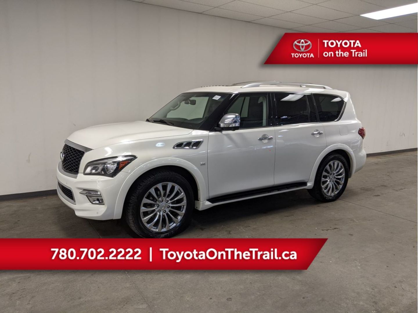 It features a powerful 56-liter V8 engine that generates up to 400 horsepower and 413 lb-ft of torque. Used 2019 INFINITI QX80 Luxe AWD for sale - 63981 - 41873 km with Leather Seats SunroofMoonroof Power Mirror Package Power Package Navigation System DVD Entertainment System Alloy Wheels Third Row Seating Trailer Package Blind Spot Monitoring Heat Package Parking Sensors Heated Seats Multi Zone Climate Control Bluetooth Memory Package Backup Camera.
