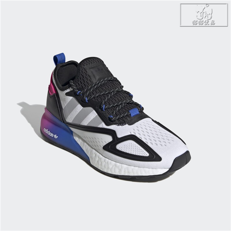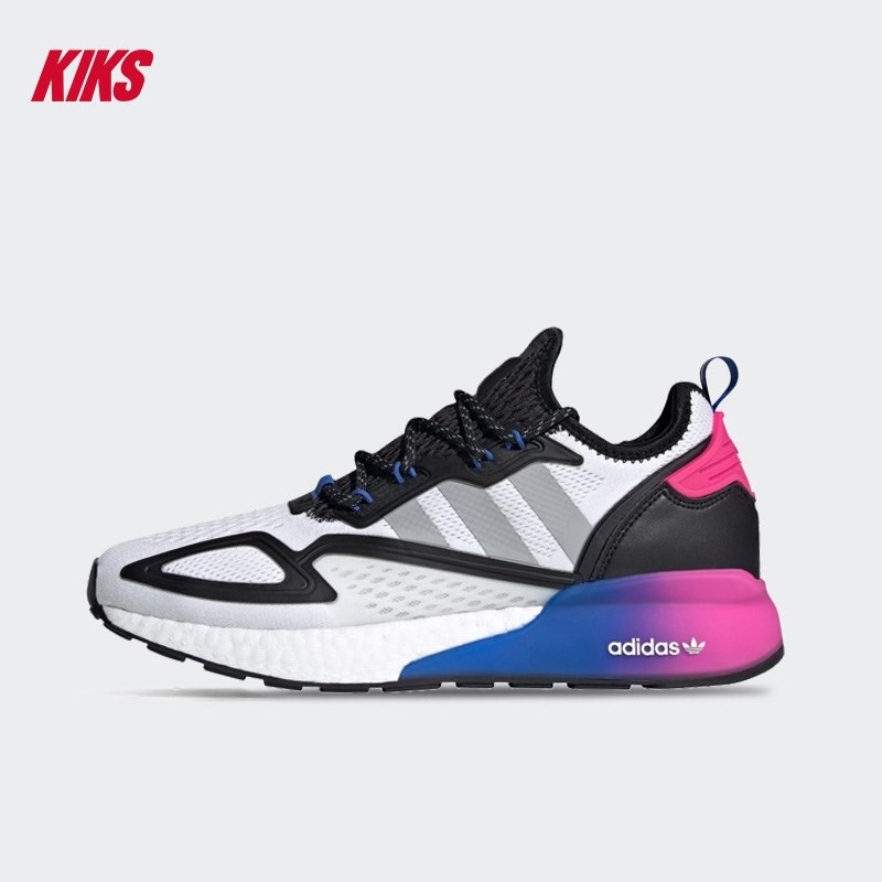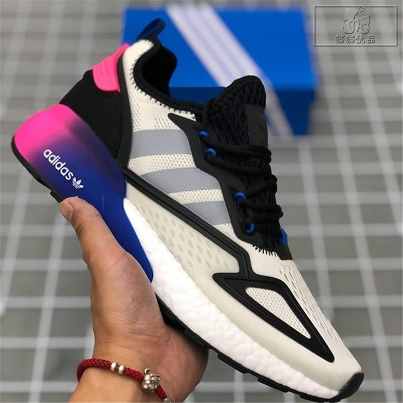 Are you all ready for this. Juntando o amortecimento com retorno de energia ao estilo progressivo a dinastia ZX está totalmente preparada para o futuro. Sporting a pink-blue gradient TPU heel clip to complement classic white and black uppers this ZX 2K BOOST is a winning silhouette.